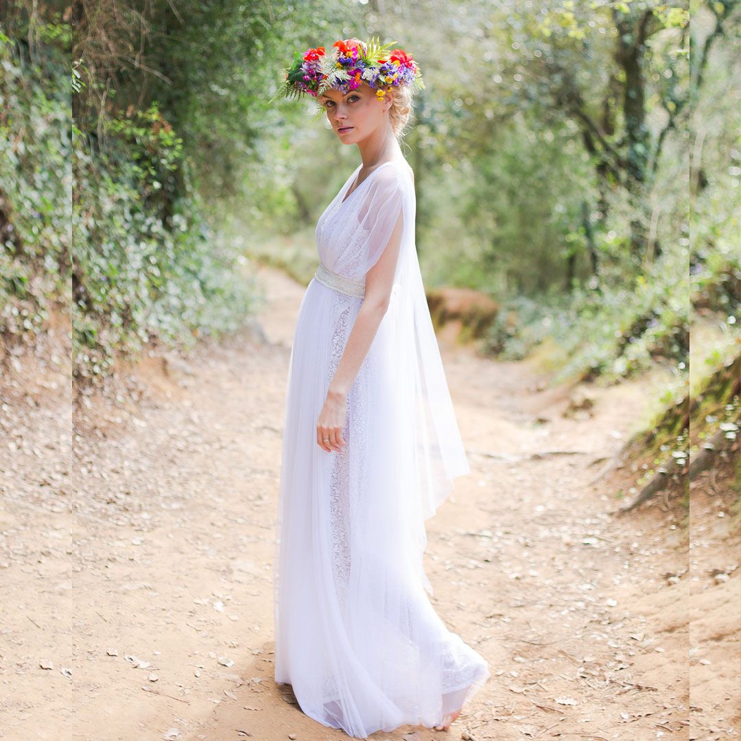 Efímero, con toques griegos o romanos, boho chic. Este vestido habla de tantas formas… Sin duda uno de los diseños más fáciles de llevar y cuidar.